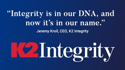 K2 Intelligence Financial Integrity Network (FIN), the preeminent risk, compliance, investigations, and monitoring firm, announced it is changing its corporate name to K2 Integrity to better reflect the company’s mission, purpose, and values. Built by industry leaders, driven by interdisciplinary teams, supported by cutting-edge technology, K2 Integrity’s mission is to safeguard the operations, reputations, and economic security of its client base.